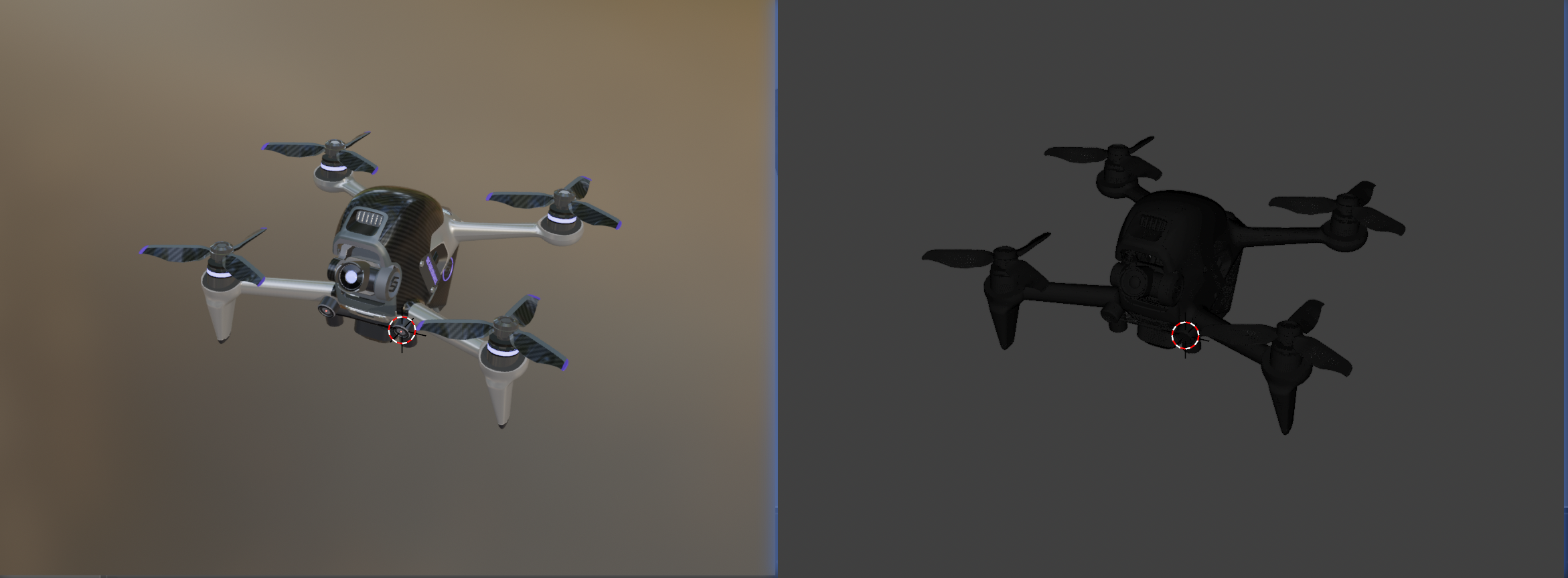 • Blender 里显示正常(左:渲染图,右:线框图)